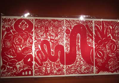 巴掌大小的窗花,民间传说中的财神,骑着毛驴回娘家的娇俏媳妇儿,幻化为龙头马尾的巨神形象的黄河……漫步中国美术馆,看着这些题材无所不包的剪纸作品,你恐怕很难相信,剪出这斑斓世界的人,居然是一位地地道道的农村老太太,还有跟她一样拥有一双巧手的女儿和外孙女。